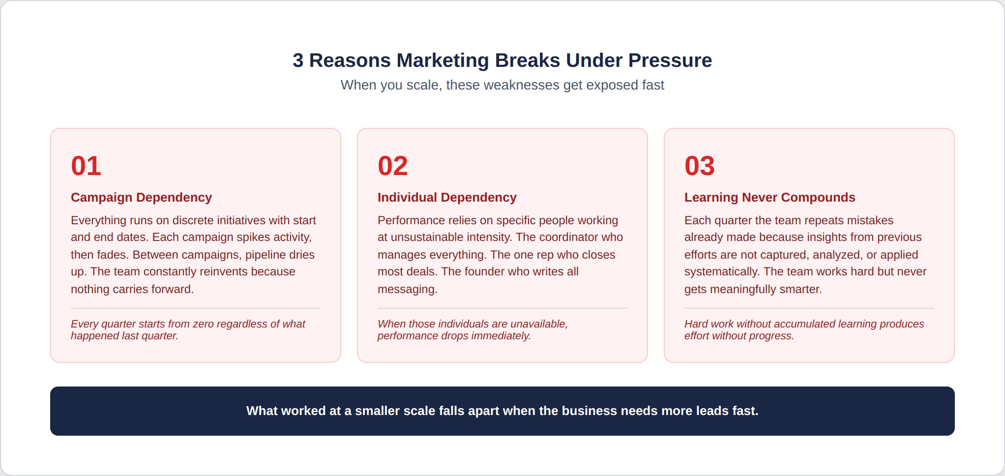 What worked at a smaller scale falls apart when the business needs more leads fast.