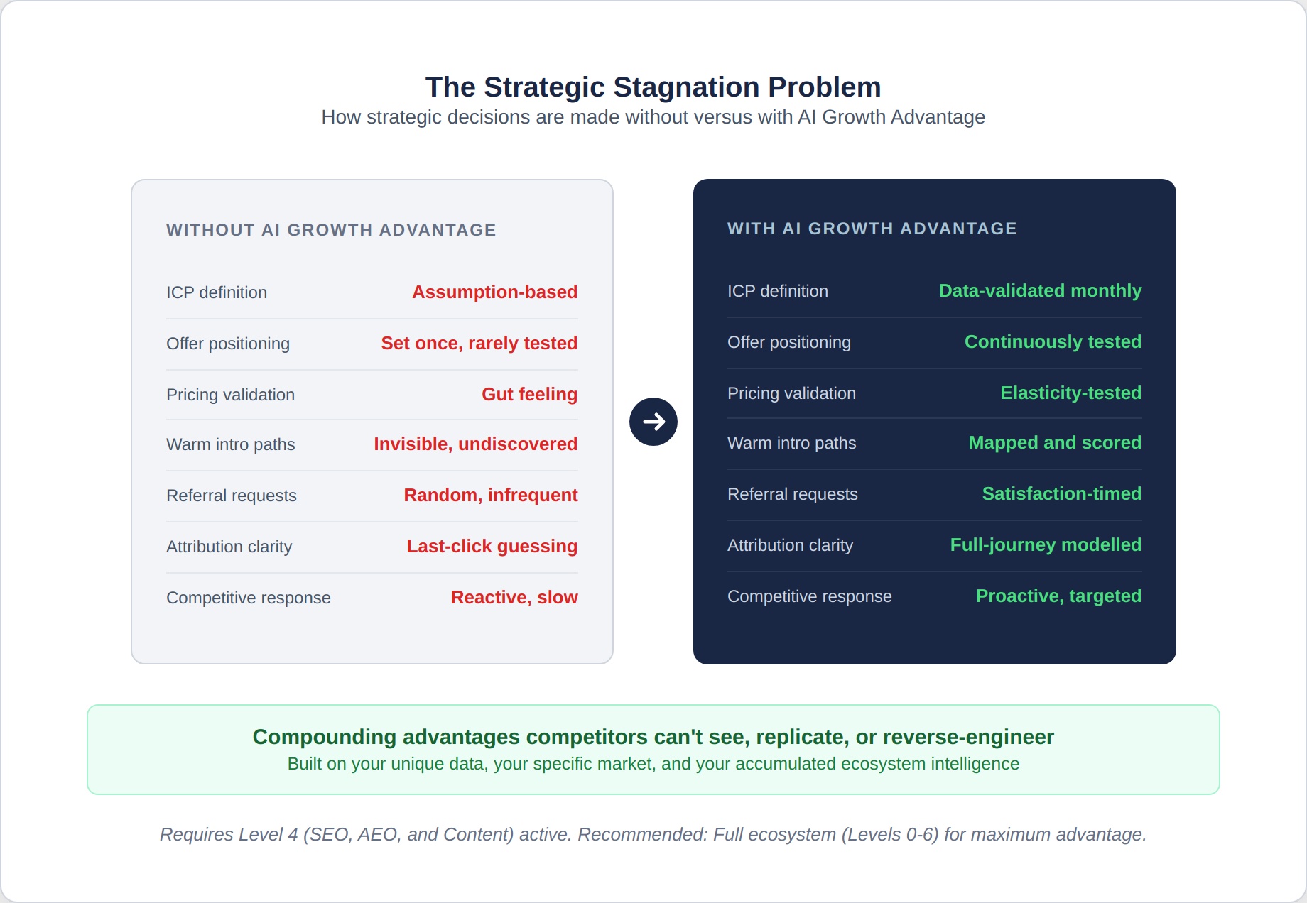 AI Growth Advantage provides the strategic intelligence. Other modules and levels execute against it.